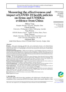 Yang, Minhua, Ramiah, Vikash, Pereira, Vijay, Temouri, Yama and Behl, Abhishek (2021) Measuring the effectiveness and impact of COVID-19 health policies on firms and UNSDGs: evidence from China. Journal of Enterprise Information Management, 35 (1). pp. 125-159. ISSN 17410398