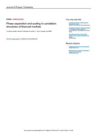 Chakraborti, Anirban, Hrishidev, Hrishidev, Sharma, Kiran and Pharasi, Hirdesh K (2021) Phase separation and scaling in correlation structures of financial markets. Journal of Physics: Complexity, 2 (1): 015002. ISSN 2632072X