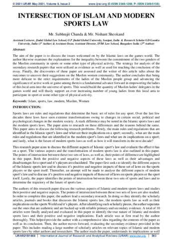 Chanda, Subhrajit and Sheokand, Nishant (2021) Intersection of Islam and modern sports law. International Journal of Research and Analytical Reviews, 8 (2). pp. 563-571. ISSN 23481269