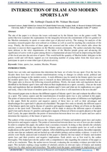 The aim of the paper is to discuss the issues welcomed on by the Islamic laws on the games world. The author likewise examines the explanations for the inequality between the commitment of the two genders of the Muslim community in sports or some other type of physical activity. The strategy for analysis of the secondary research papers that were utilized as evidence as well as used for reaching the conclusion of the essay. Finally, the discoveries of these paper are assessed and the writer of this article talks about the outcomes to uncover their suggestions on the Muslim women community. The author concludes that being more delicate to the strict requirements of the ladies of the Muslim people group and advancing the significance of active work or game among them is a fundamental advance forward in empowering the ladies of this local area into the universe of sports. This would build the quantity of Muslim ladies' delegates in the games world and will thusly support an ever increasing number of young ladies from this local area to participate in sport or some other type of physical activity.