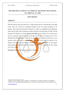 With the intricacy that the taxation laws of India present and the overburdening of the High Courts, there was a need for a specialized tribunal to hear over matters pertaining to tax disputes. Due to this the National Tax Tribunal Act, 2005 was established by the Parliament under Article 323B of the Constitution of India with effect from December 28, 2005, and the National Tax Tribunal was created. However, the NTT Act has caused a lot of controversies and was eventually repealed for being an obsolete law by the Law Commission in its Two Hundred Forty-Eighth Report.1 While the Act has now been rendered invalid and is out of operation, there is a need for a tribunal such as the NTT for the effective redressal of tax disputes. This paper will deal with the controversial provisions of the NTT Act and suggest improvements/recommendations in the enactment to allow it to reconcile with the existing rule of law in India.