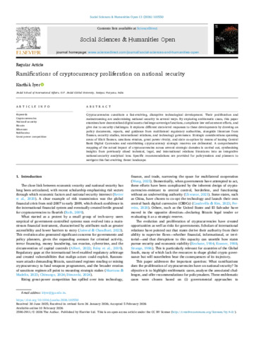 Iyer, Karthik (2026) Ramifications of cryptocurrency proliferation on national security. Social Sciences & Humanities Open, 13: 102550. ISSN 2590-2911