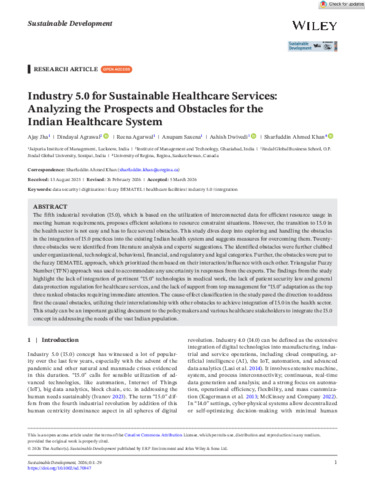 Industry 5.0 for sustainable healthcare services: analyzing the prospects and obstacles for the Indian healthcare system.