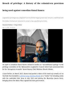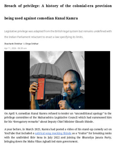 Shekhar, Shashank and Sridhar, Divya (2026) Breach of privilege: a history of the colonial-era provision being used against comedian Kunal Kamra. SCSN Pvt Ltd., India.