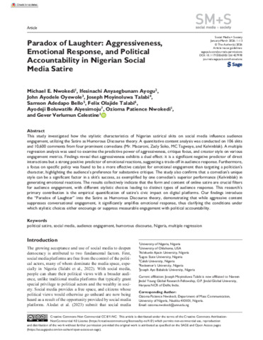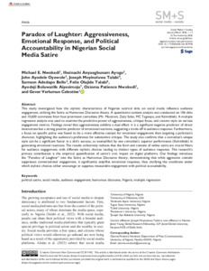 Paradox of Laughter- Aggressiveness,Emotional Response, and PoliticalAccountability in Nigerian SocialMedia Satire.pdf - Published Version