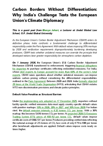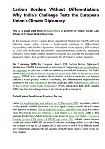 As the European Union's Carbon Border Adjustment Mechanism (CBAM) enters its definitive phase, India confronts a fundamental challenge to differentiated responsibility under the Paris Agreement. With default values imposing 30% markups by 2028 and verification requirements disproportionately burdening developing producers, CBAM tests whether unilateral measures can override the principle that developed nations bear greater responsibility for atmospheric carbon depletion.