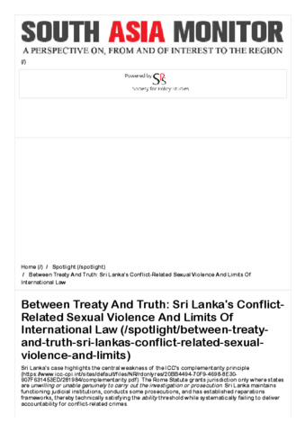 Between treaty and truth: Sri Lanka's conflict-related sexual violence and limits of international law.