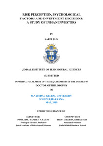 Jain, Sarni (2019) Risk perception, psychological factors and investment decision: A study of Indian investors. Doctoral thesis, O.P. Jindal Global University, Haryana, India.