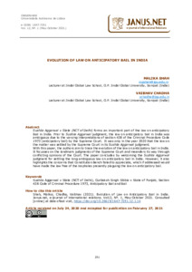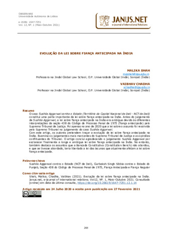 Shah, Malika Galib and Chadha, Vaibhav (2021) Evolution of law on anticipatory bail in India. Janus.net, 12 (1). pp. 251-264. ISSN 16477251