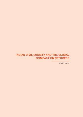 Field, Jessica (2020) Indian civil society and the global compact on refugees. In: The global compact on refugees: Indian perspective and experiences. Academicians’ Working Group Coordinator, UNHCR India, New Delhi, pp. 163-175.