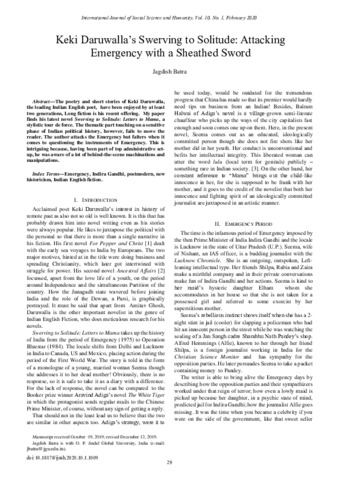 Batra, Jagdish (2020) Keki Daruwalla's 'Swerving to Solitude': Attacking Emergency with a Sheathed Sword. International Journal of Social Science & Humanity, 10 (1). pp. 29-34. ISSN 20103646