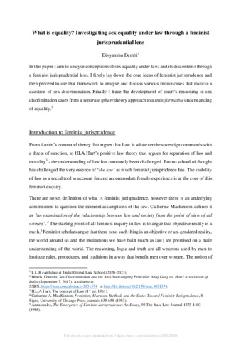 Dembi, Divyanshu (2021) What is equality? Investigating sex equality under law through a feminist jurisprudential lens. [Preprint]