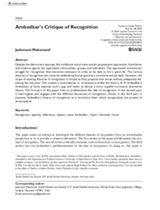 it interrogates and engages with the different discourses of recognition. Finally, in the third part, it presents Ambedkar’s theory of recognition as a normative ideal, which encapsulates the project of emancipation.