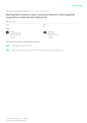 Star, Shaun and Joshua, McLeod (2021) Reaching new frontiers in sport governance research: Exploring board composition in national sport federations. Journal of Sports Law, Policy and Governance, 2 (2). pp. 1-6.