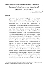 Holland, Kenneth (2021) Pakistan’s national interest and recognition of Afghanistan’s Taliban regime. Journal of Security and Strategic Analyses, 7 (2). pp. 7-22. ISSN 27084272