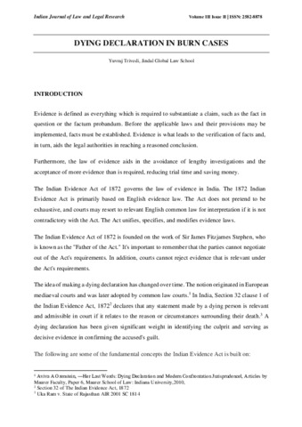 Trivedi, Yuvraj (2022) Dying declaration in burn cases. Indian Journal of Law and Legal Research, 3 (2). pp. 1793-1903. ISSN 2582-8878