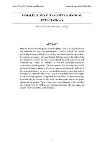 Jaiswal, Khushi (2022) Female criminals and stereotypical expectations. Indian Journal of Law and Legal Research, 3 (2). pp. 2254-2259. ISSN 2582-8878