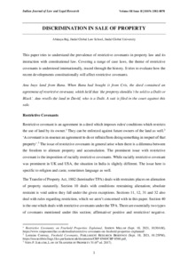 This paper tries to understand the prevalence of restrictive covenants in property law and its interaction with constitutional law. Covering a range of case laws, the theme of restrictive covenants is understood internationally, traced through the history. It tries to evaluate how the recent developments constitutionally will affect restrictive covenants.