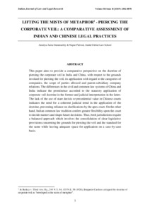 Gurumurthy, Amulya Anita and Paliwal, Nupur (2022) Lifting the mists of metaphor - piercing the corporate veil: A comparative assessment of Indian and Chinese legal practices. Indian Journal of Law and Legal Research, 3 (2). pp. 2492-2501. ISSN 2582-8878