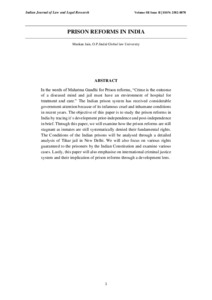 In the words of Mahatma Gandhi for Prison reforms, “Crime is the outcome of a diseased mind and jail must have an environment of hospital for treatment and care.” The Indian prison system has received considerable government attention because of its infamous cruel and inhumane conditions in recent years. The objective of this paper is to study the prison reforms in India by tracing it`s development prior-independence and post-independence in brief. Through this paper, we will examine how the prison reforms are still stagnant as inmates are still systematically denied their fundamental rights. The Conditions of the Indian prisons will be analysed through a detailed analysis of Tihar jail in New Delhi. We will also focus on various rights guaranteed to the prisoners by the Indian Constitution and examine various cases. Lastly, this paper will also emphasise on international criminal justice system and their implication of prison reforms through a development lens.