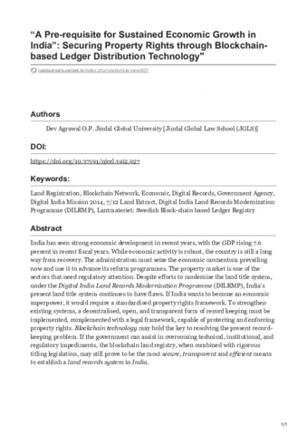 lawjournals.celnet.in-A Pre-requisite for Sustained Economic Growth in India Securing Property Rights through Blockchain-ba.pdf - Published Version