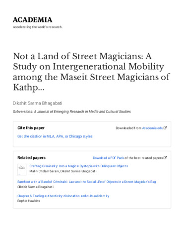 Singh, Devangna, Bhagabati, Dikshit Sarma, Vijay, Ishan and Chidambaram, Malini (2018) Not a land of street magicians: A study on intergenerational mobility among the maseit street magicians of kathputli colony, Delhi. SubVersions, 6. ISSN 23479426