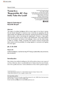 Chakrabarti, Rajesh and Sanyal, Kaushiki (2020) Towards a ‘Responsible AI’: can India take the lead? South Asia Economic Journal, 21 (11). pp. 158-177. ISSN 13915614
