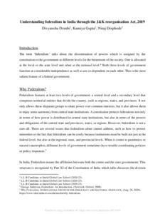 Dembi, Divyanshu, Doiphode, Niraj and Gupta, Kamiya (2021) Understanding federalism in India through the J&K reorganisation Act, 2019. [Preprint]