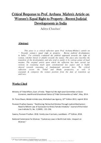 Chauhan, Aditya (2021) Critical response to Prof. Archana Mishra's article on women’s equal right to property: Recent judicial developments in India. [Preprint]