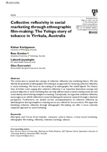 Kariippanon, Kishan, Gordon, Ross, Jayasinghe, Laknath and Gurruwiwi, Glen (2020) Collective reflexivity in social marketing through ethnographic film-making: The Yolngu story of tobacco in Yirrkala, Australia. Marketing Theory, 20 (1). pp. 123-143. ISSN 14705931