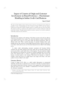 Panda, Tapan Kumar (2016) Impact of country of origin and customer involvement on brand preference: Discriminant modeling in Indian credit card business. IUP Journal of Brand Management, 13 (4). pp. 7-23. ISSN 0972-9097