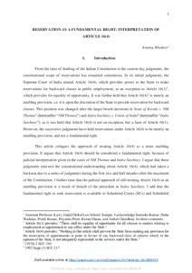 Bhaskar, Anurag (2021) Reservation as a fundamental right: Interpretation of article 16(4). [Preprint]