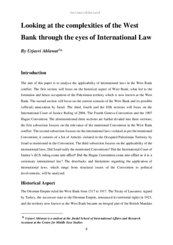 Ahlawat, Urjasvi (2021) Looking at the complexities of the West Bank through the eyes of international law. Other. The Centre for Middle East Studies, Haryana.