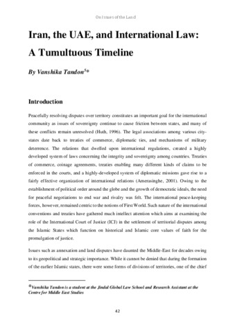 Tandon, Vanshika (2021) Iran, the UAE, and international law: A tumultuous timeline. Other. The Centre for Middle East Studies, Haryana.
