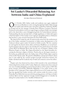 Goswami, Anubhav Shankar (2021) Sri Lanka’s discarded balancing act between India and China explained. Journal of the Indo Pacific Affairs. pp. 01-05. ISSN 25765361