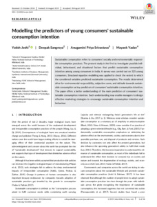 Joshi, Yatish, Sangroya, Deepak, Srivastava, Anugamini Priya and Yadav, Mayank (2019) Modelling the predictors of young consumers' sustainable consumption intention. International Journal of Nonprofit and Voluntary Sector Marketing, 24 (4): e1663. ISSN 1479103X