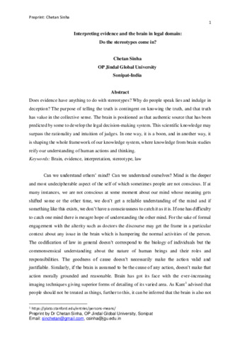 Sinha, Chetan (2022) Interpreting evidence and the brain in legal domain: Do the stereotypes come in? [Preprint] (Unpublished)