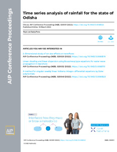 -, Rajni and Patra, Sudip (2022) Time series analysis of rainfall for the state of Odisha. In: Proceedings of the third international conference on frontiers in industrial and applied mathematics 2020, 21–22 December 2020, Jamshedpur, India.