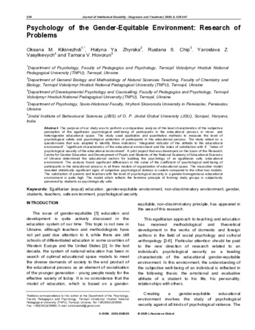 Kikinezhdi, Oksana M., Zhyrska, Halyna Ya, Chip, Ruslana S and Vasylkevych, Yaroslava Z (2020) Psychology of the gender-equitable environment: Research of problems. Journal of Intellectual Disability - Diagnosis and Treatment, 8 (3). pp. 538-547. ISSN 22922598