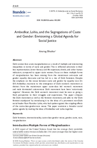 Bhaskar, Anurag (2020) Ambedkar, Lohia, and the segregations of caste and gender: envisioning a global agenda for social justice. CASTE: A Global Journal on Social Exclusion, 1 (2). pp. 63-72. ISSN 26394928