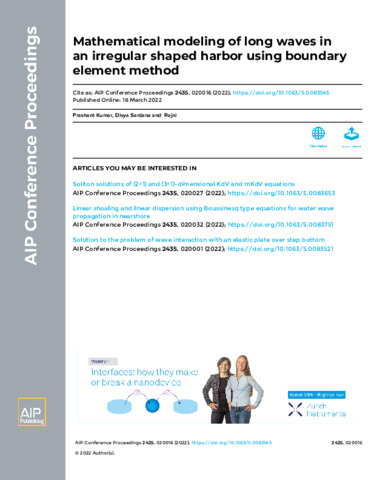 Kumar, Prashant, Sardana, Divya and -, Rajni (2022) Mathematical modeling of long waves in an irregular shaped harbor using boundary element method. In: Proceedings of the third international conference on frontiers in industrial and applied mathematics 2020, 21–22 December 2020, Jamshedpur, India.