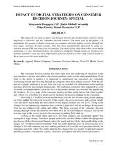 Dasgupta, Sabyasachi and Grover, Priya (2019) Impact of digital strategies on consumer decision journey: special. Academy of Marketing Studies Journal, 23 (1). ISSN 10956298