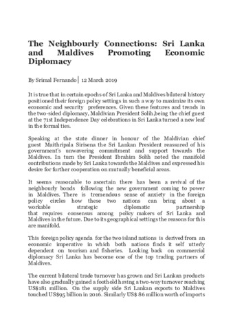 Fernando, Srimal (2019) The neighbourly connections: Sri Lanka and Maldives promoting economic. The Diplomatic Society, South Africa.