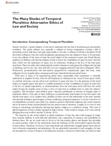 Sreejith, S. G. and Babu, R. Rajesh (2020) The many shades of temporal pluralities: Alternative ethics of law and society (Editorial). Journal of Human Values, 26 (1). pp. 7-16. ISSN 9716858