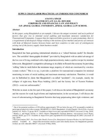 Singh, Ananya (2020) Supply chain labor practices: an unresolved conundrum. [Preprint]