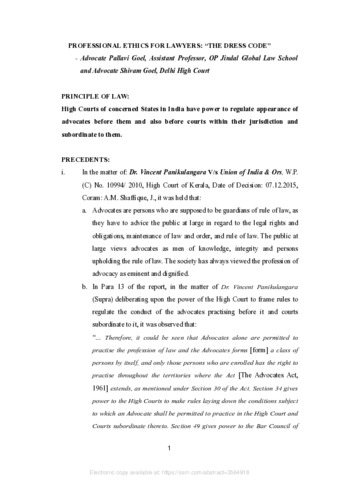 Gupta, Pallavi and Goel, Shivam (2020) Professional ethics for lawyers: ‘The Dress Code’. [Preprint]