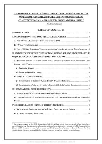 Khamroi, Anubhav (2021) Dead hand rule or constitutional guardian: a comparative analysis of judicially imposed limitations on formal constitutional change in India, Bangladesh and Israel. [Preprint] (In Press)