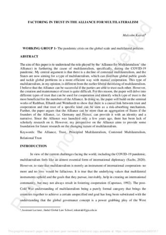 Katrak, Malcolm (2021) Factoring in trust in the alliance for multilateralism. [Preprint] (In Press)