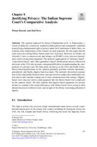Baruah, Pritam and Deva, Zaid (2019) Justifying privacy: The Indian supreme court’s comparative analysis. In: The Indian yearbook of comparative law 2018. The Indian Yearbook of Comparative Law . Springer, Singapore, pp. 191-212. ISBN 9789811370519