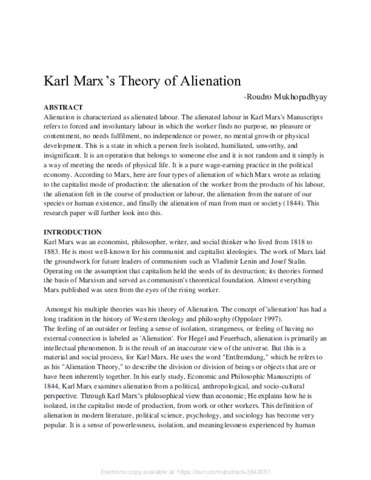 Mukhopadhyay, Roudro (2021) Karl Marx’s theory of alienation. [Preprint] (In Press)